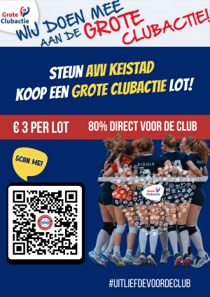 Ook dit jaar doet AVV Keistad weer mee met de Grote Clubactie. Een lot kost 3 euro. 80% van de opbrengst gaat direct naar onze club. AVV Keistad ontvangt dus per verkocht lot € 2,40. Vorig jaar hebben we met deze actie een bedrag van ruim € 3.300 verdiend. Graag willen wij het resultaat van 2020 evenaren, maar het liefst verbeteren natuurlijk.