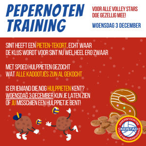 Met de Sint (bijna) in het land hebben de Volley Stars ook dit jaar natuurlijk weer een Pepernotentraining op het programma staan!
