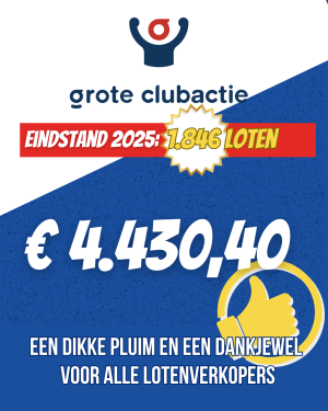 Alle verkochte loten van de Grote Clubactie zijn geteld. En we zijn helemaal verrast door de geweldige opbrengst: € 3.330,50. Er werd gehoopt op een opbrengst van rond de € 2.500 en dit overtreft onze verwachtingen dan ook.