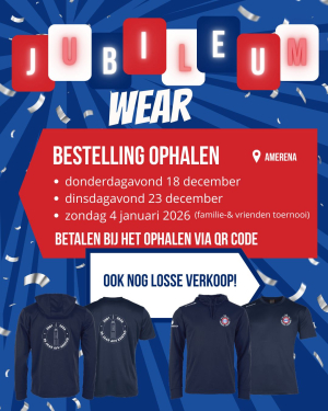 Heb jij je Jubileum Wear al besteld?! Dan liggen jouw shirt en/of hoody klaar in de Amerena op de volgende dagen. Nog niet besteld? Doe dat dan alsnog via het bestelformulier of kom langs op de ophaaldagen voor de losse verkoop!