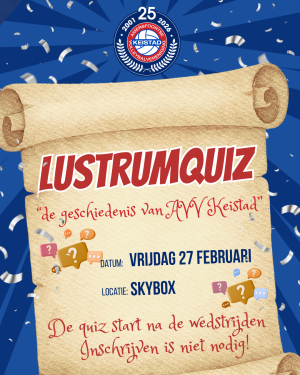 Niet vergeten: Jubileum Pubquiz op 27 februari in de Skybox, na de wedstrijden! Enne, we kunnen jouw input goed gebruiken;)